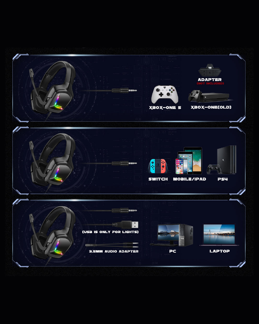 Onikuma K20 RGB Audífonos Gamer con Sonido Envolvente Estéreo | Micrófono HD + Cancelación de Ruido | Cableado Jack 3.5mm | Compatibles PS5, PC, Xbox, Switch