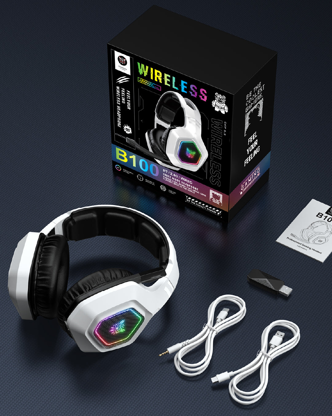 Onikuma B100 Audífonos Gamer Bluetooth | Tri Mode, Micrófono HD y Sonido Envolvente | RGB, Compatibles PS5, PC, Xbox, Switch