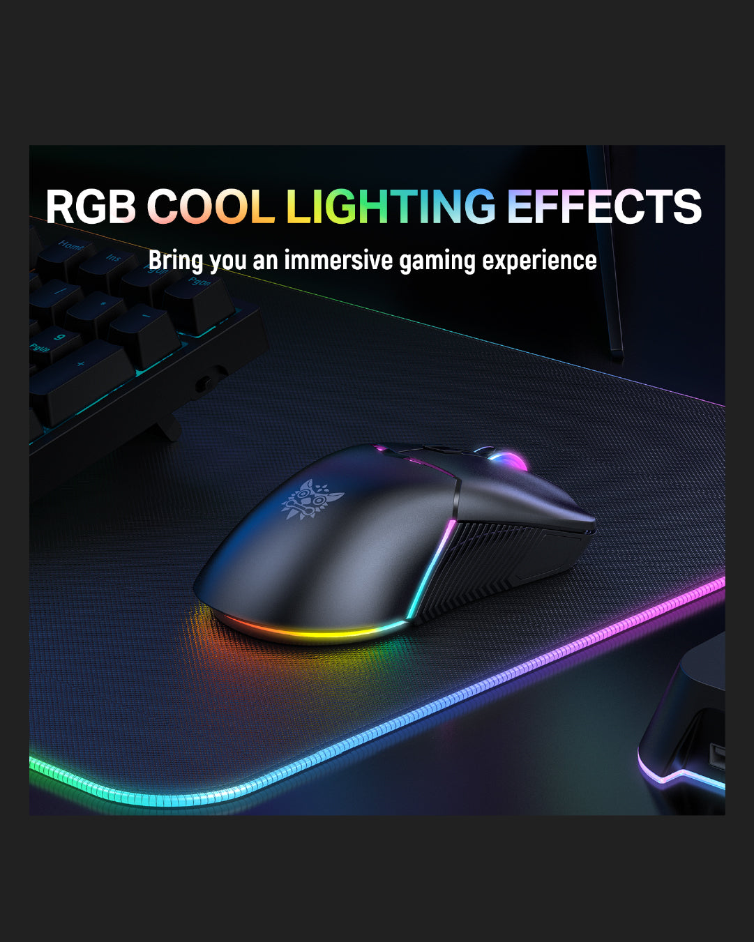 Onikuma CW928 Tri Mode Mouse Gamer Inalámbrico - Negro| Bluetooth 5.0, 2.4G y USB | RGB, 16,000 DPI Ajustables, 7 Botones Programables | Compatible con PC y Laptop