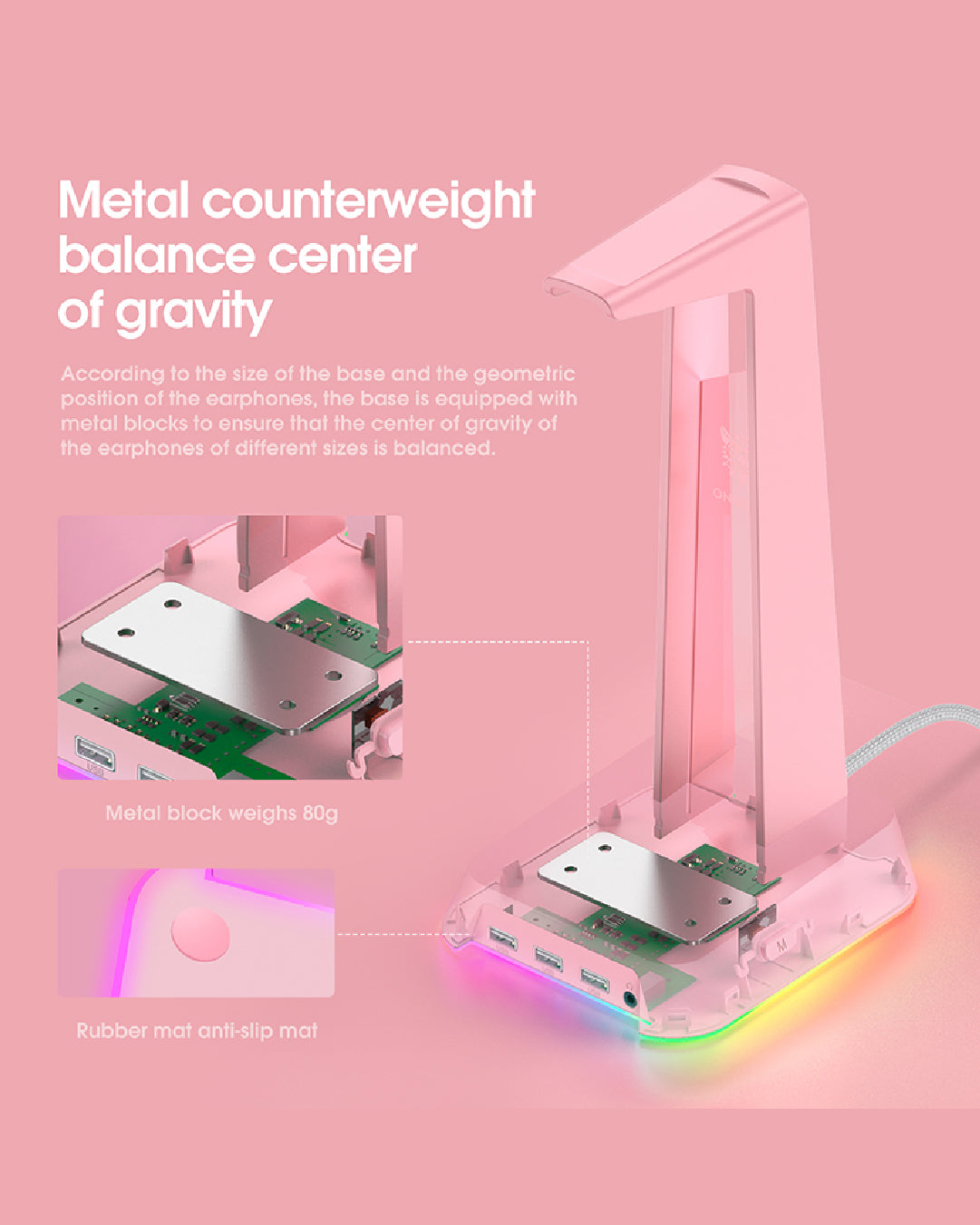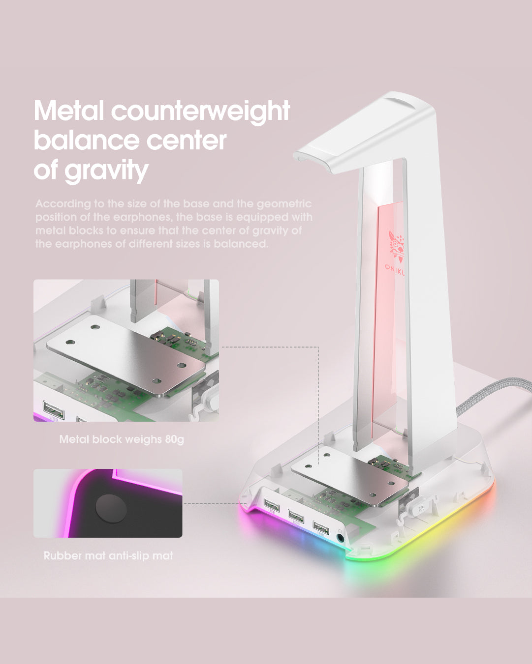 Onikuma ST-2 Soporte para Audífonos Gamer | Base Antideslizante, Diseño Minimalista, Compatible con Todo Tipo de Headsets | Accesorio Ideal para Escritorio