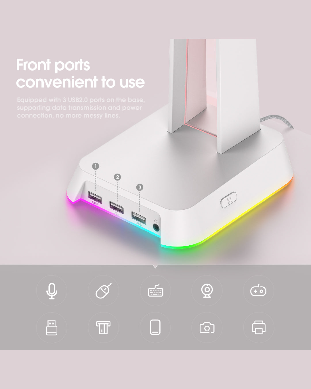 Gestión de Cables: Ideal para mantener un escritorio limpio, centralizando las conexiones de audio y USB en un solo lugar.